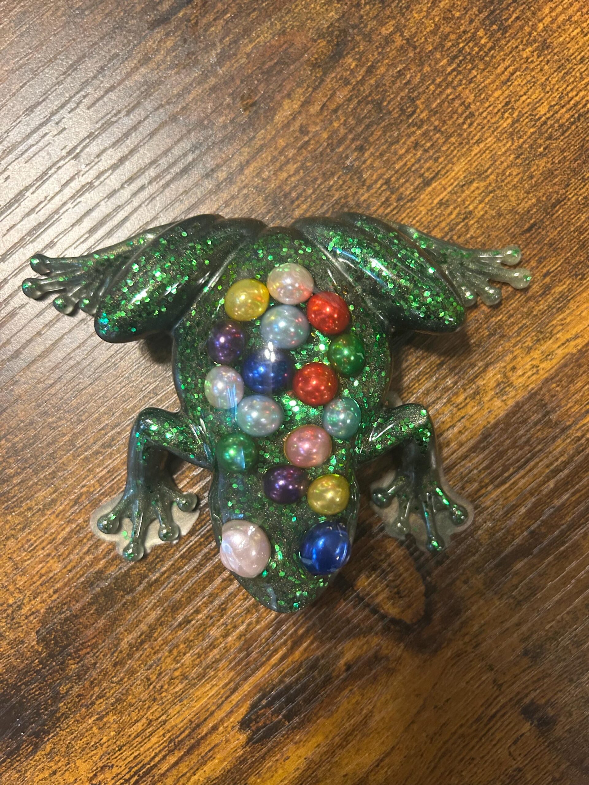 Add a splash of color and character to your surroundings with this enchanting handcrafted resin frog!
