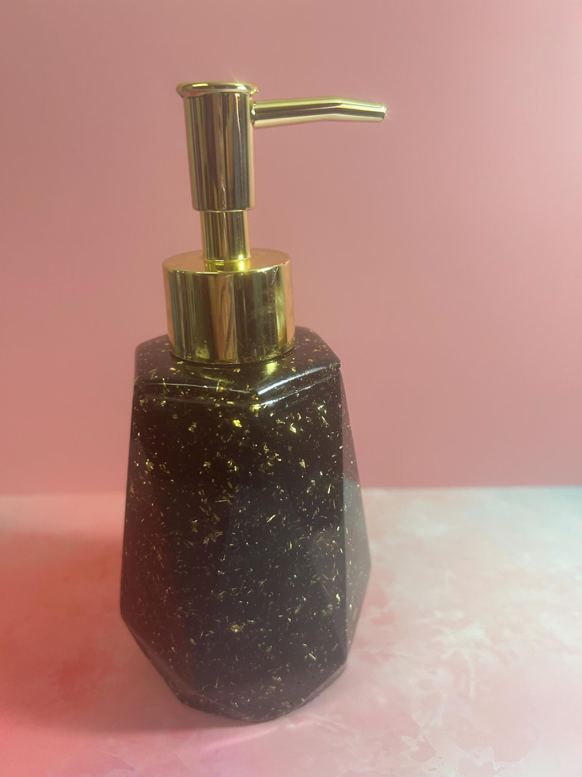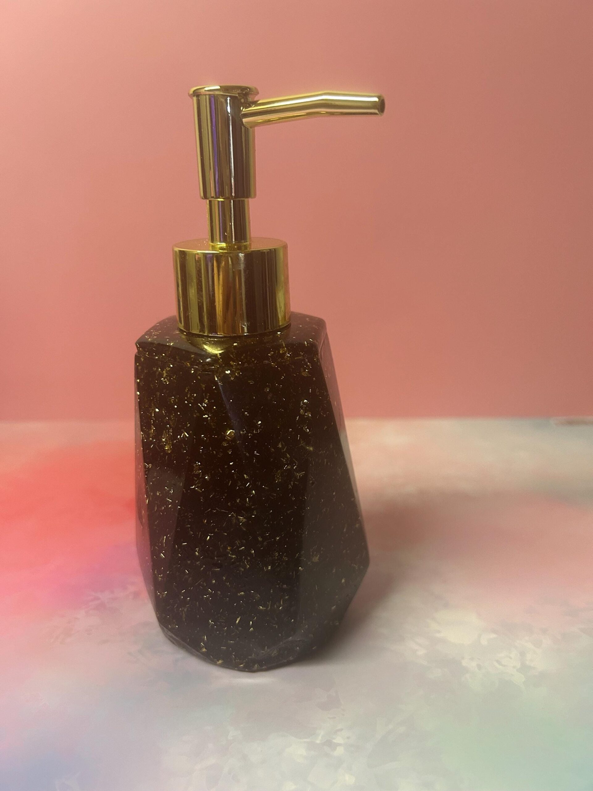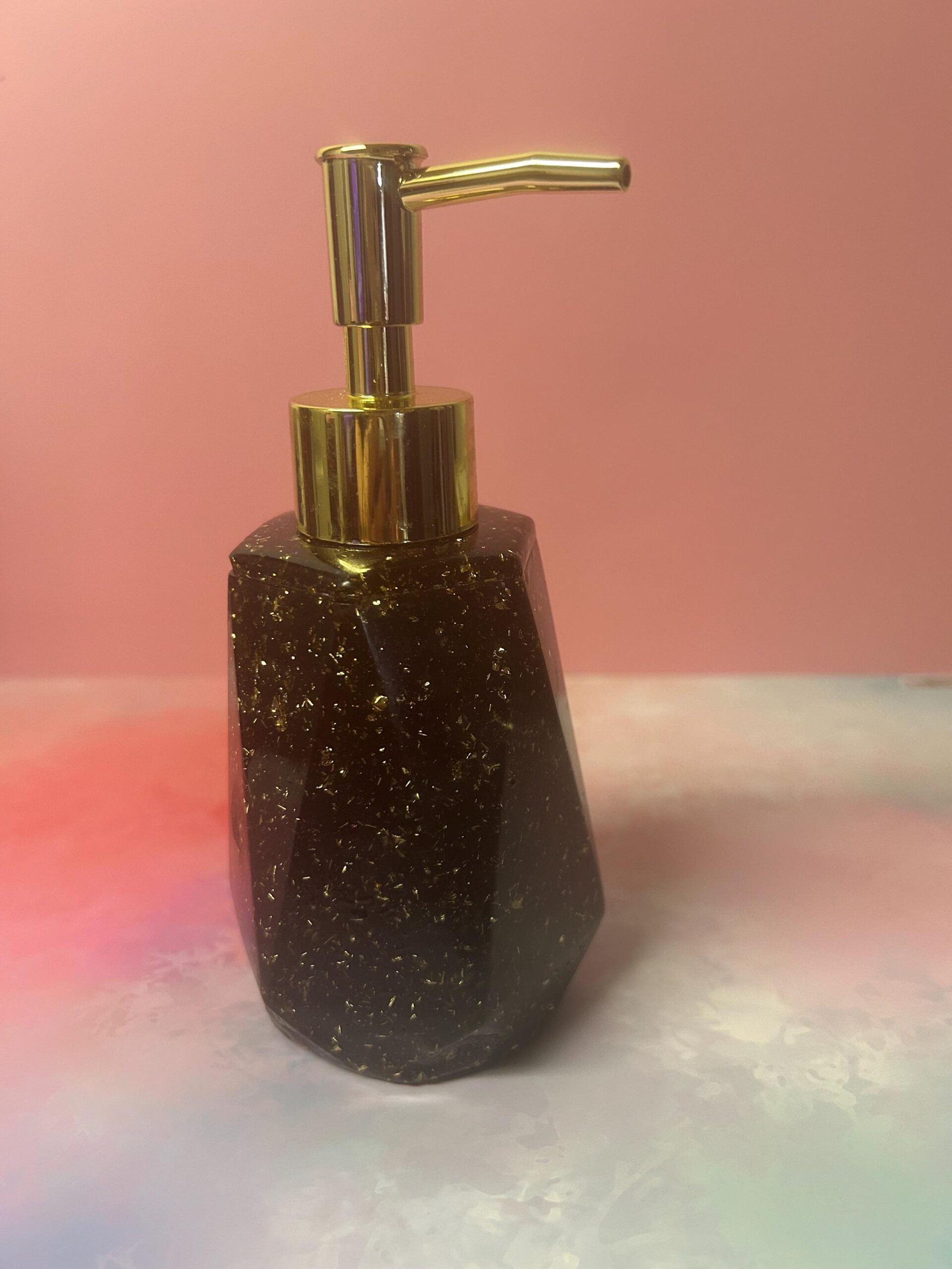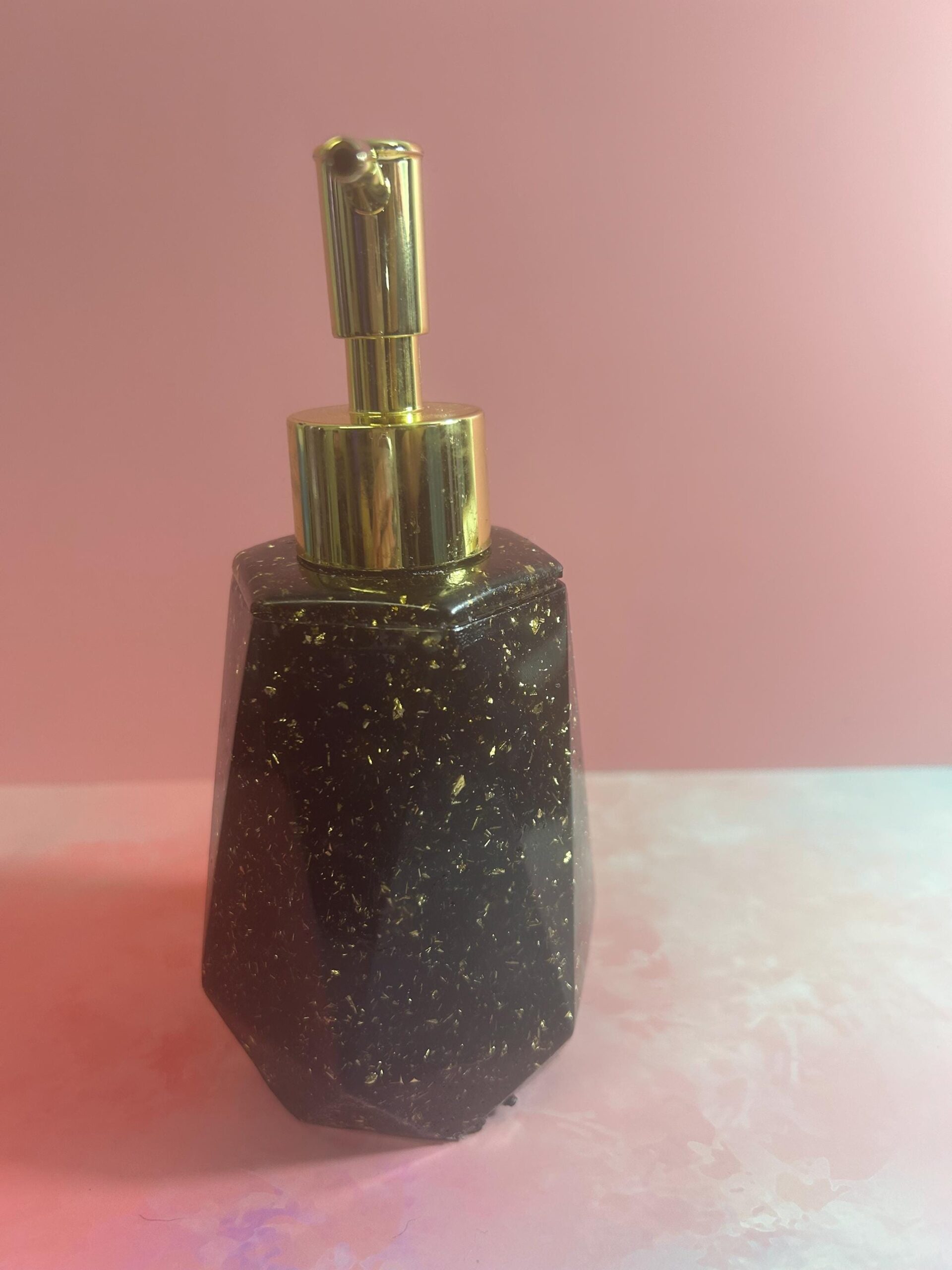 Handmade soap dispenser . Black and gold. We can also make it with a silver or gold handle and can make it any color you would like .