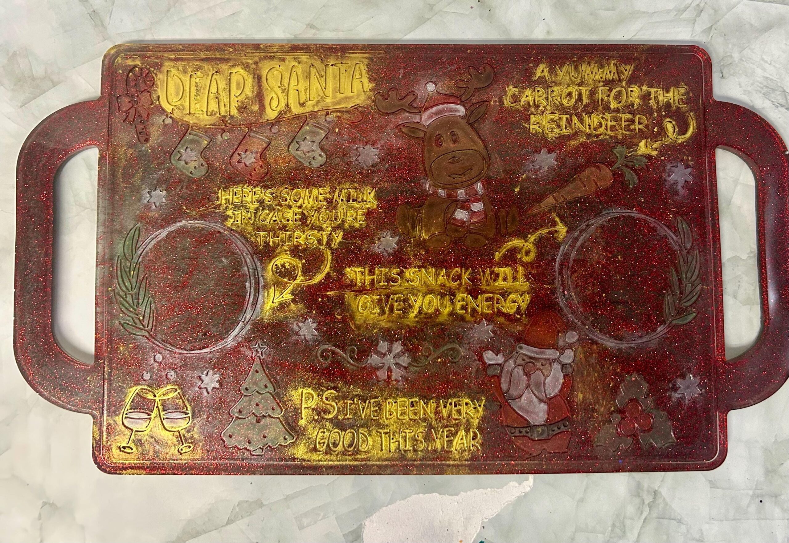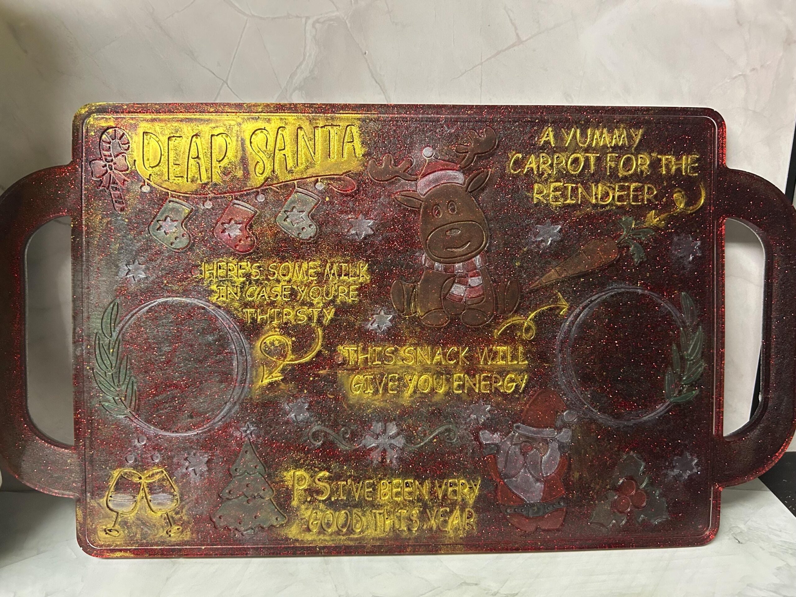 Handmade Resin Santa Snack Tray – Festive Holiday Serving Dish