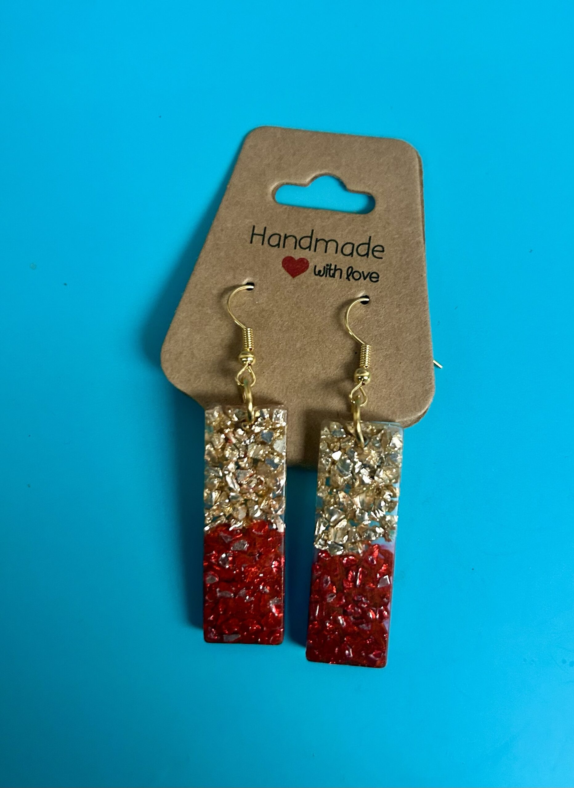Handmade dangling earrings blue white