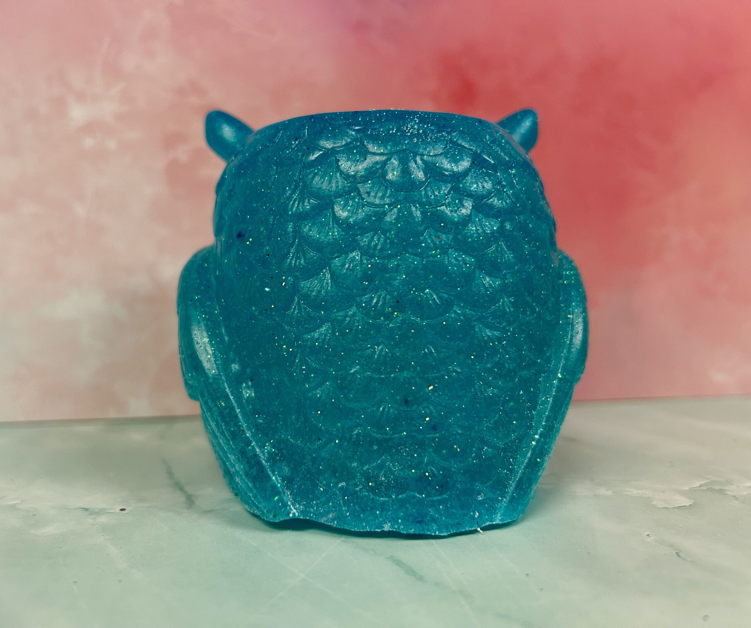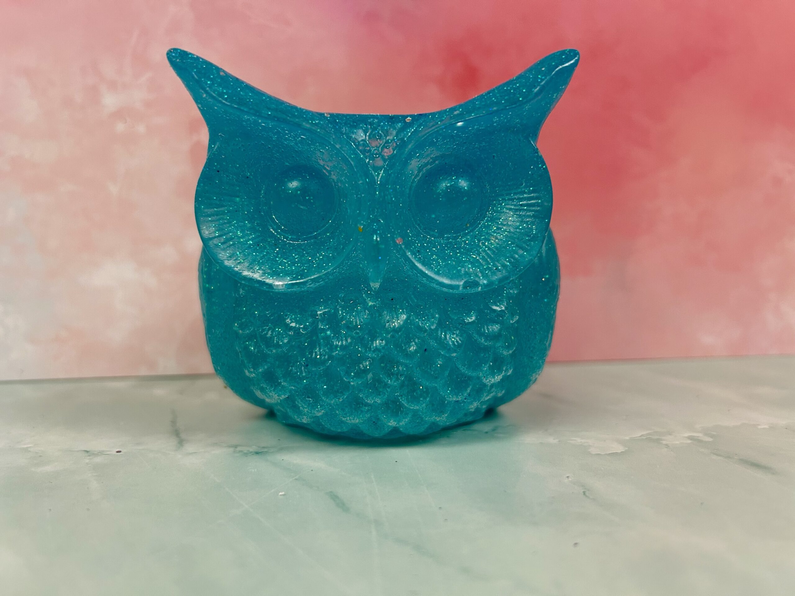 Bring a little wisdom and whimsy to your space with this handmade resin owl figurine. Standing approximately 3 inches high, this charming blue owl features striking eyes and a clever hollow design, allowing you to tuck small treasures inside. Perfect for holding tiny trinkets, crystals, notes, or keepsakes, it’s as functional as it is adorable.