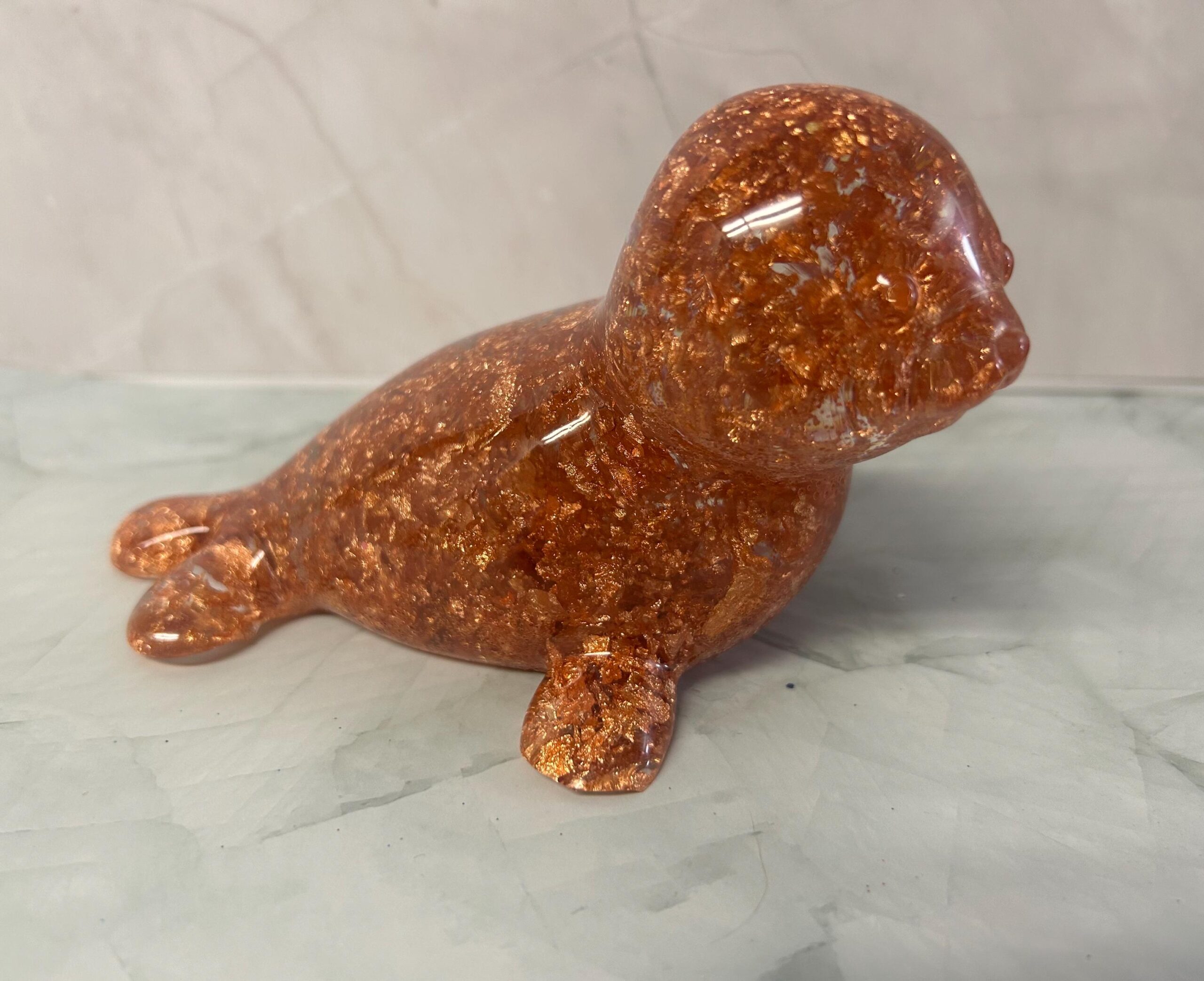 Handmade Orange Resin Seal – Whimsical Decorative Figurine