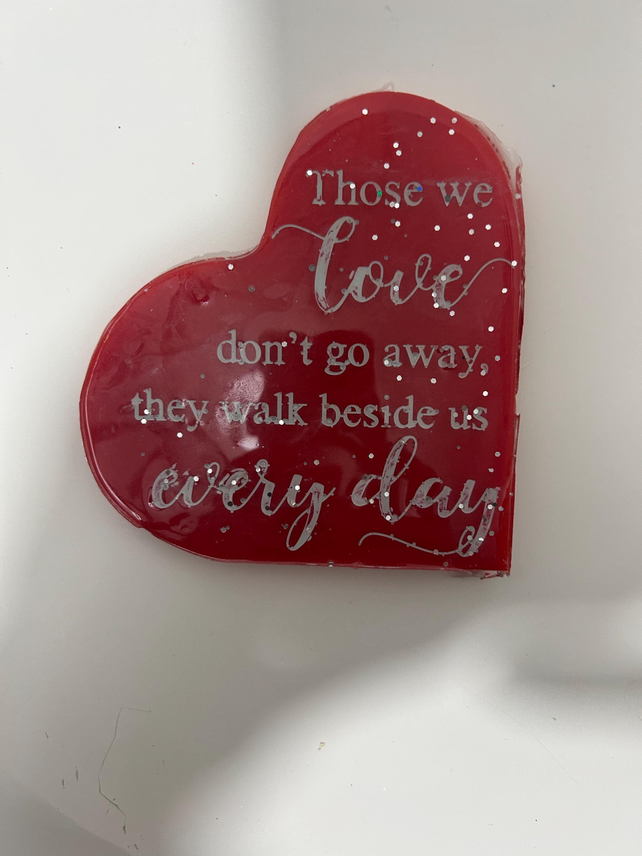 Honor the memory of a loved one with this beautifully crafted handmade resin memorial heart. Each piece is thoughtfully created using high-quality resin and delicate glitter accents, giving it a soft, shimmering finish that catches the light in a comforting way.