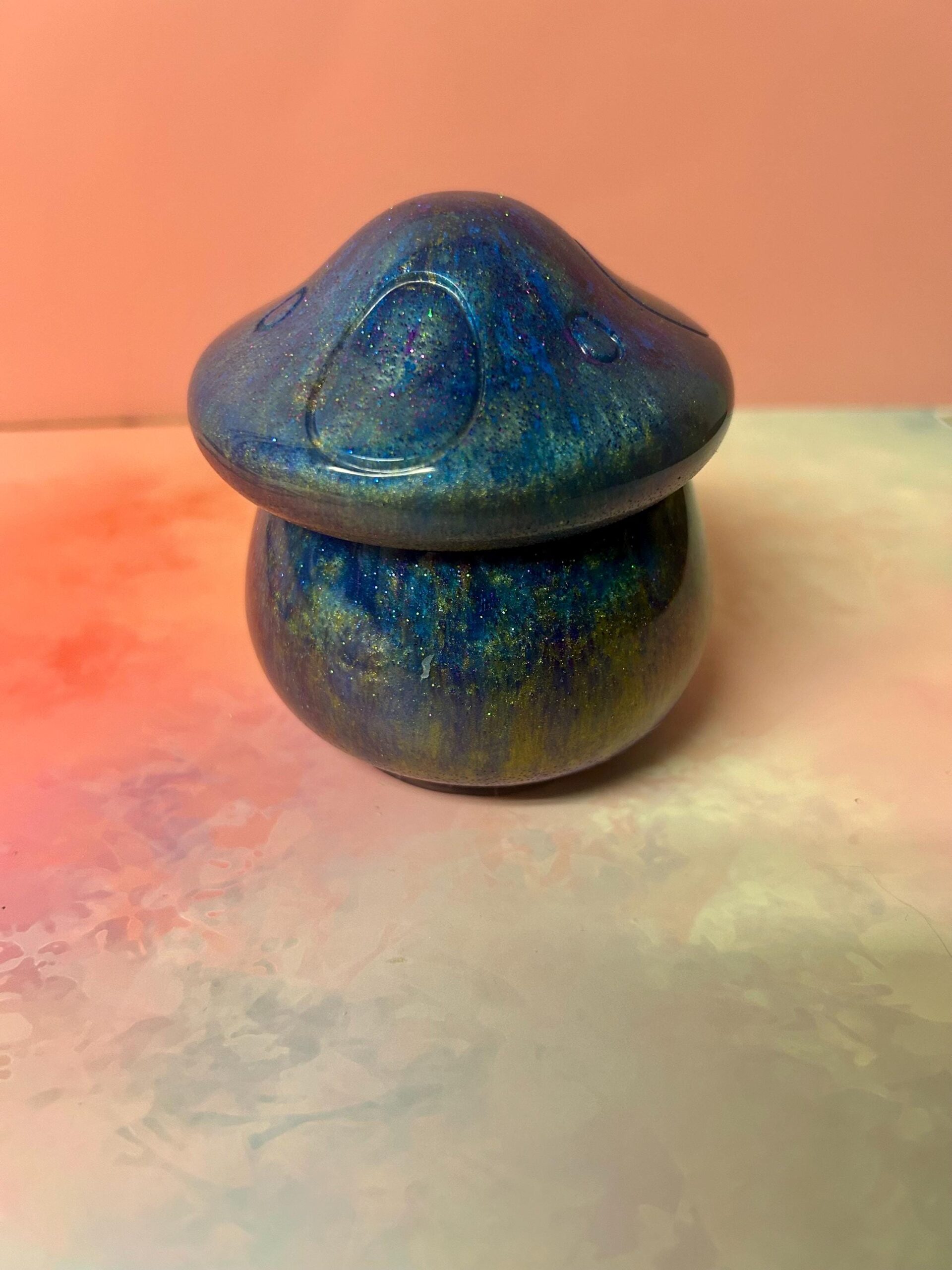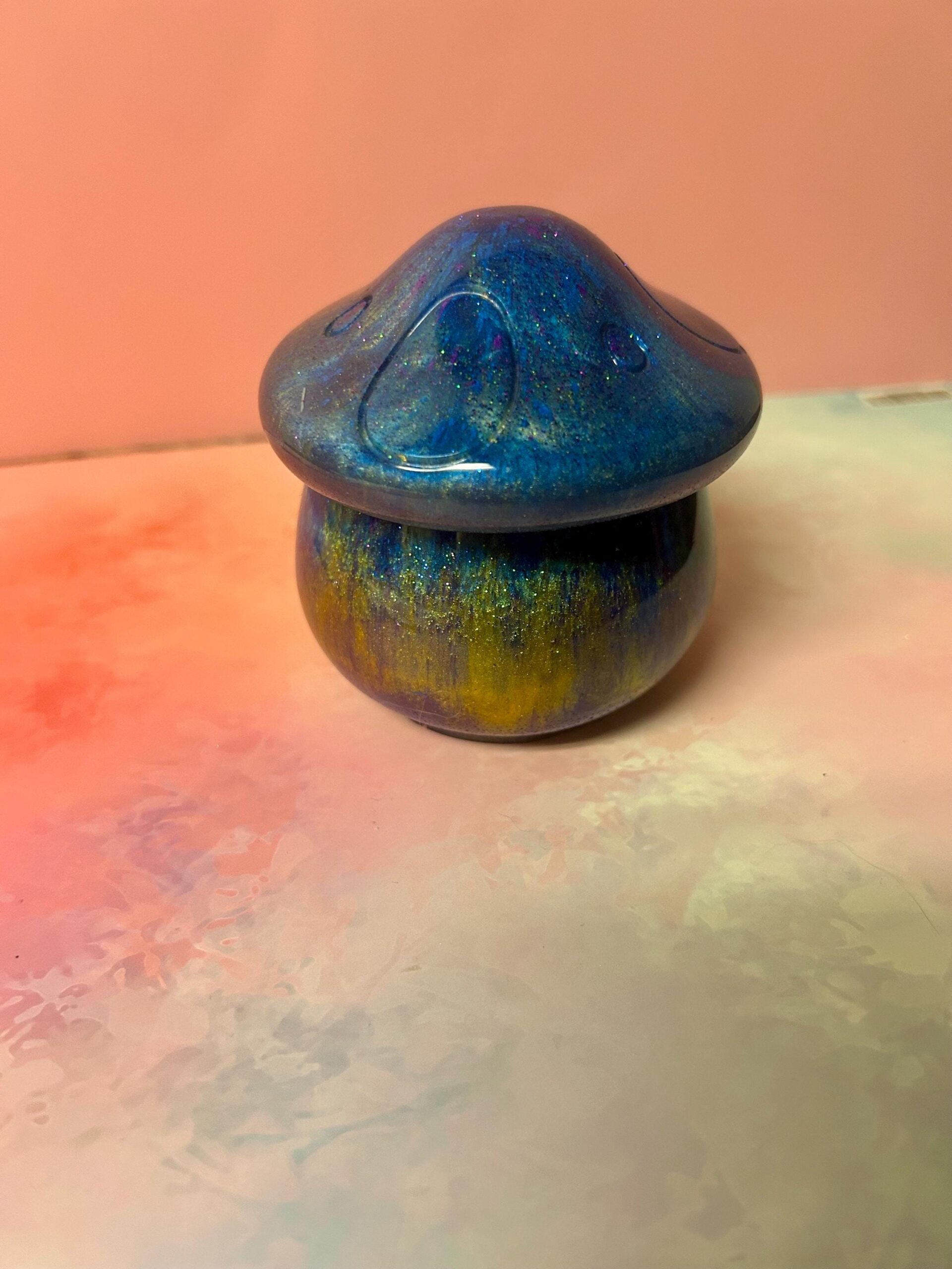 Multicolored Handmade Resin Mushroom Trinket Jar – Jewelry Dish & Decorative Accent