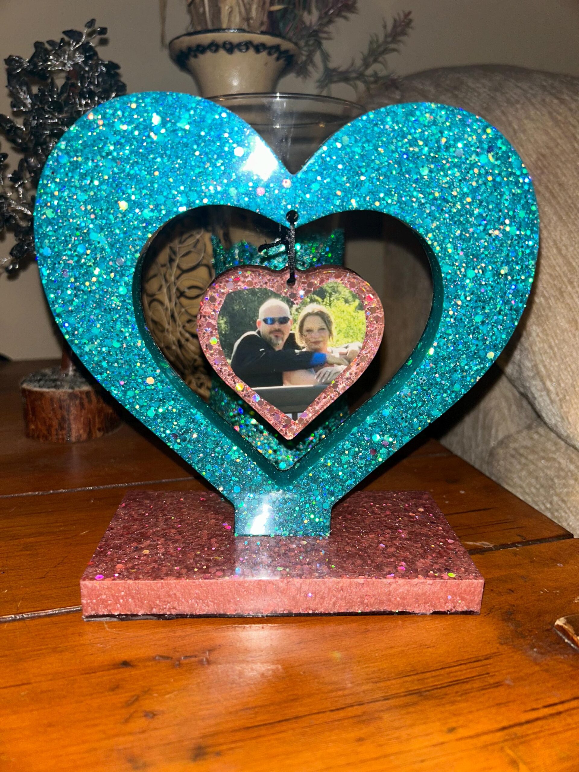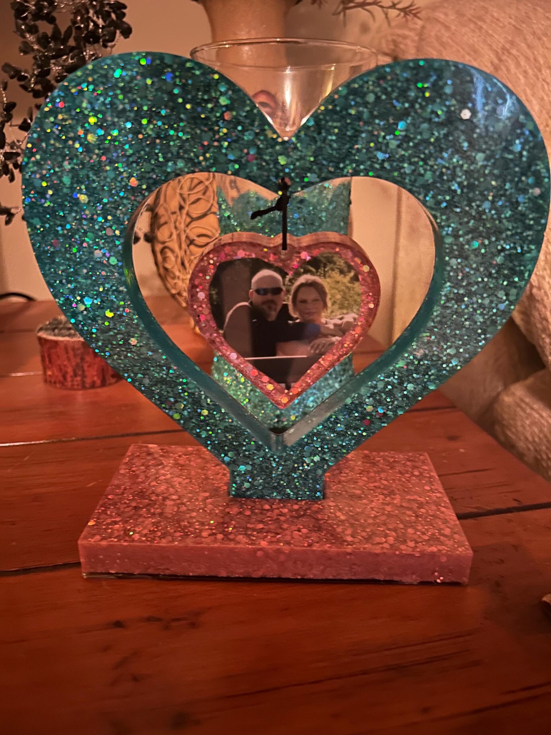 Handmade Resin Heart Photo Display – Customized Colors & Your Special Photo