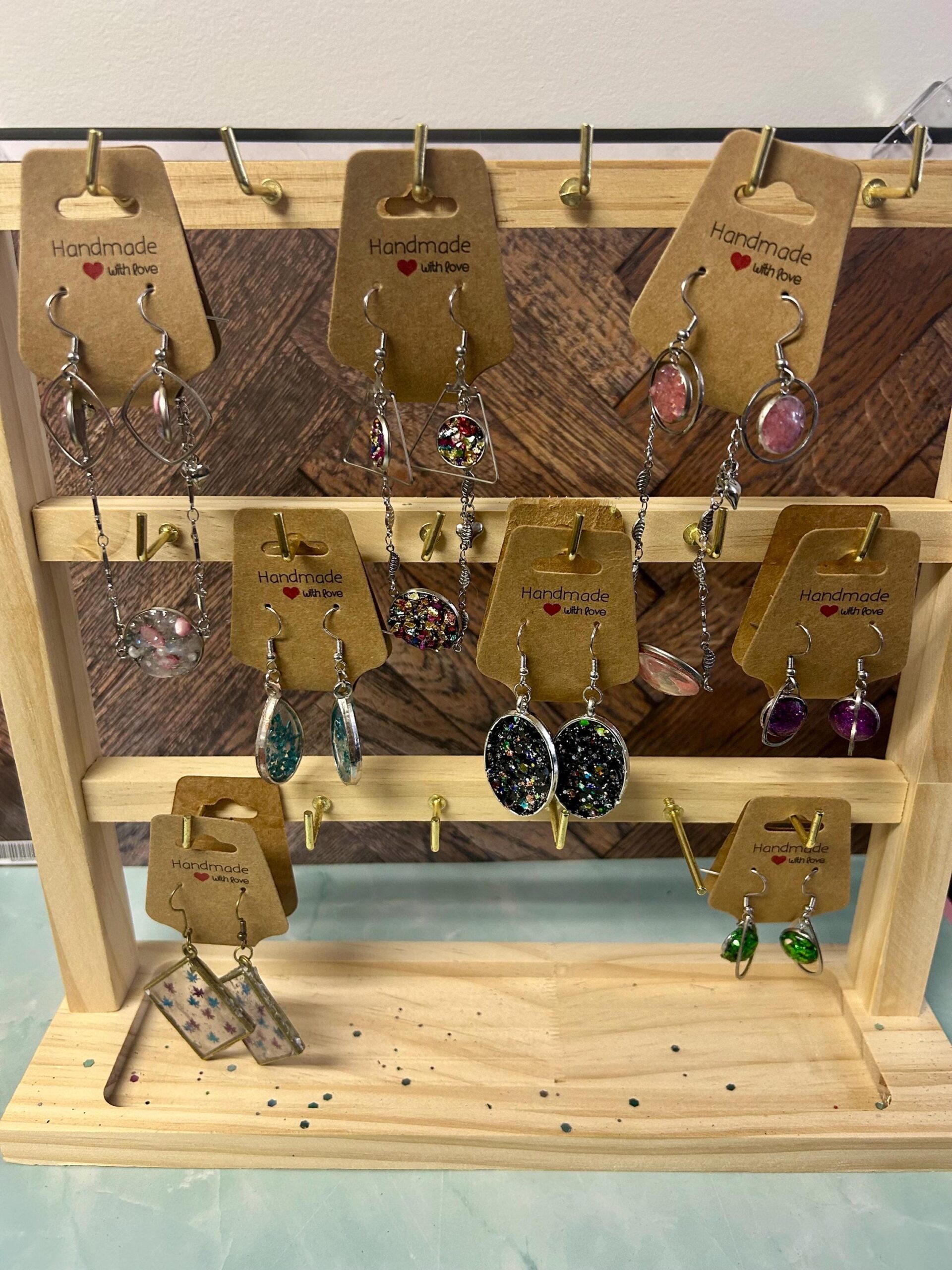 Elevate your everyday look with our handcrafted silver earrings and bracelets, each made with care, creativity, and a touch of sparkle. Every piece is individually designed using high-quality silver findings and vibrant resin accents, giving you jewelry that feels both unique and personal.