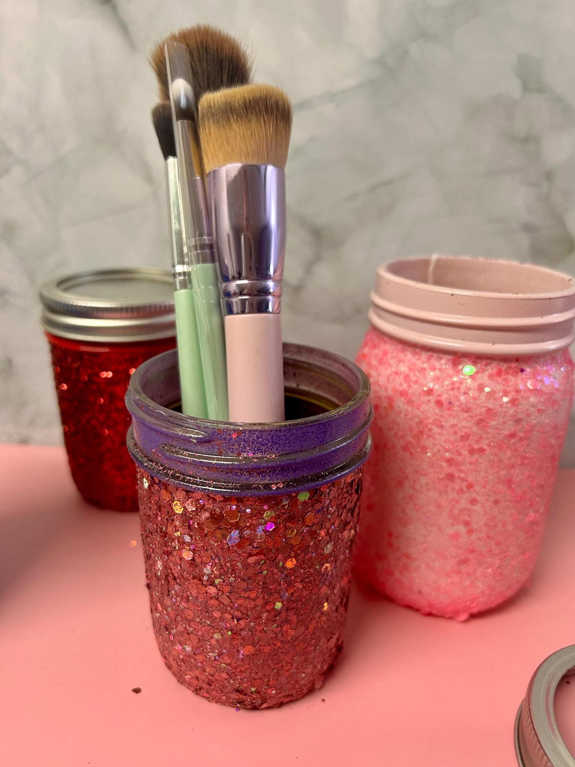 Whether you’re organizing your workspace, adding personality to your beauty setup, or looking for a unique gift, this glitter mason jar brings functionality and flair together in one sparkling package.